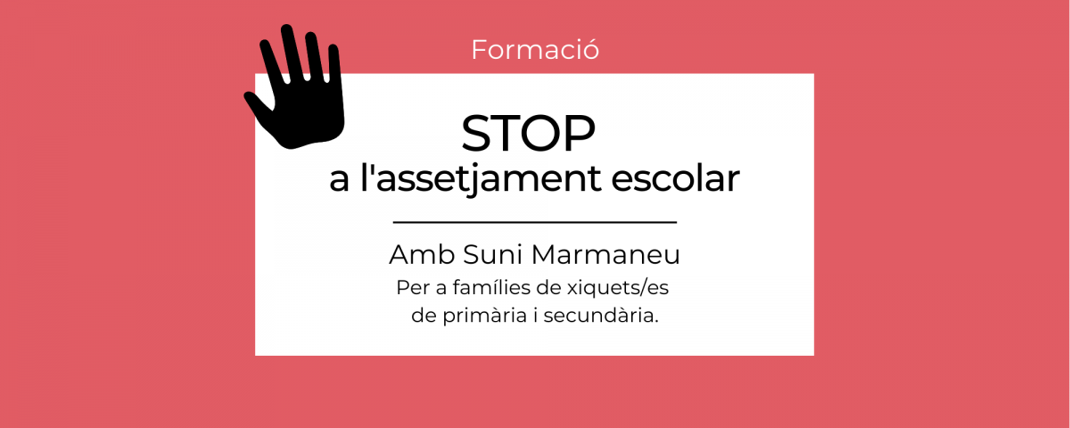La formación se centrará en la prevención del acoso desde la familia y el acompañamiento emocional. La formadora, Suni Marmaneu, abordará el tema del acoso escolar entre iguales, dando indicadores para detectarlo y sugerencias para evitar que se desarrolle tanto en las escuelas como en casa. Es responsabilidad de todos educar para prevenir, crear un clima de confianza en que la víctima pueda pedir ayuda y transmitir a los niños/as y adolescentes una base de valores para enfrentar críticamente estas situaciones.