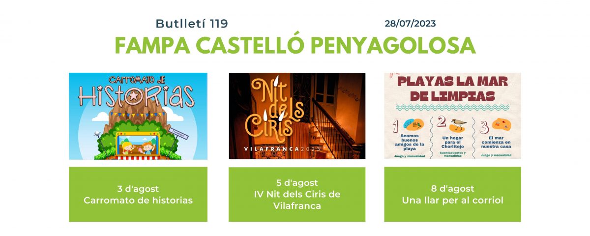 - La primera actividad es el espectáculo de títeres Carromato de Historias que se realizará el 3 de agosto a las 20 h frente a la Oficina de Turismo Heliópolis (Avda. Ferrandis Salvador s/n), Benicasim.