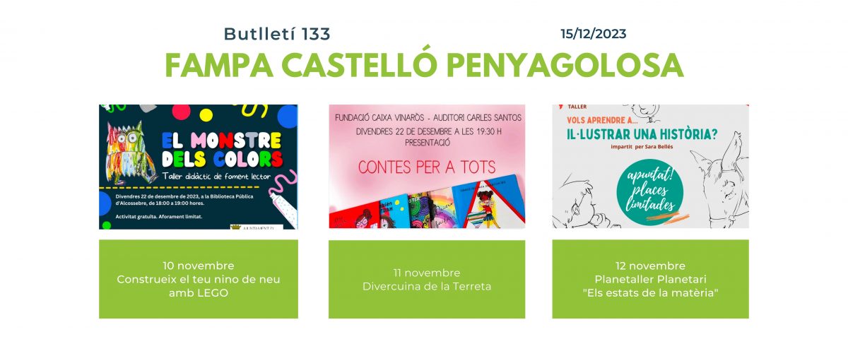 22 de diciembre: Cuentos para todos. Presentación de libro de cuentos infantiles a cargo de la autora Marina Gutiérrez Rabasa. A las 19.30 h en el Auditorio Carles Santos de Vinaròs.