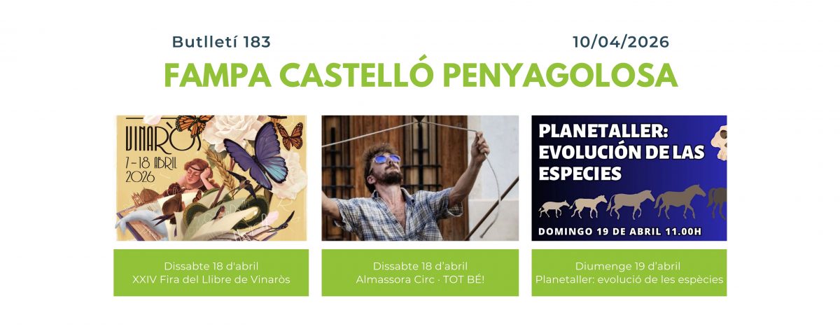 Compartimos con vosotros una nueva edición del boletín de la FAMPA Castelló Penyagolosa. En él encontraréis una selección de actividades gratuitas para disfrutar en familia. El objetivo es acercaros opciones de ocio educativo, cultural y lúdico para niños, niñas y jóvenes en diferentes comarcas de la provincia, para que podáis pasar tiempo de calidad juntos sin necesidad de realizar grandes desplazamientos.