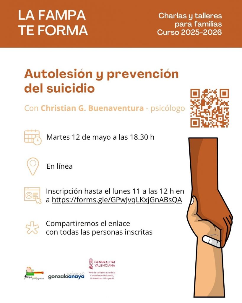 Este taller va dirigido a familias que quieren comprender y prevenir las conductas autolesivas y el riesgo de suicidio en la adolescencia, una etapa especialmente sensible desde el punto de vista emocional.