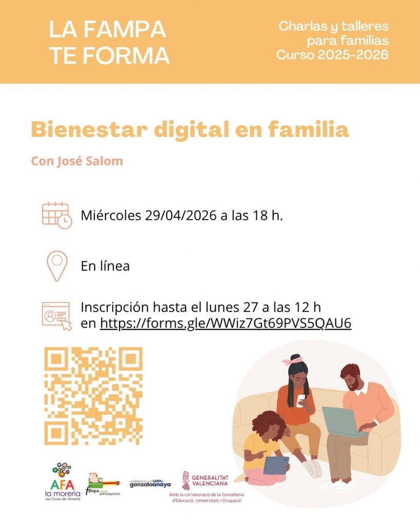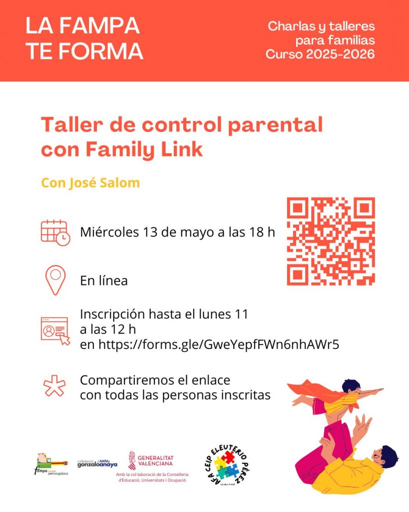 Este taller está pensado para ayudar a las familias a gestionar de manera segura el uso de los dispositivos móviles e Internet por parte de sus hijos e hijas. En un contexto en el que el acceso a la tecnología comienza cada vez más pronto, se trabaja la importancia del control parental como herramienta de acompañamiento educativo, no solo de supervisión.