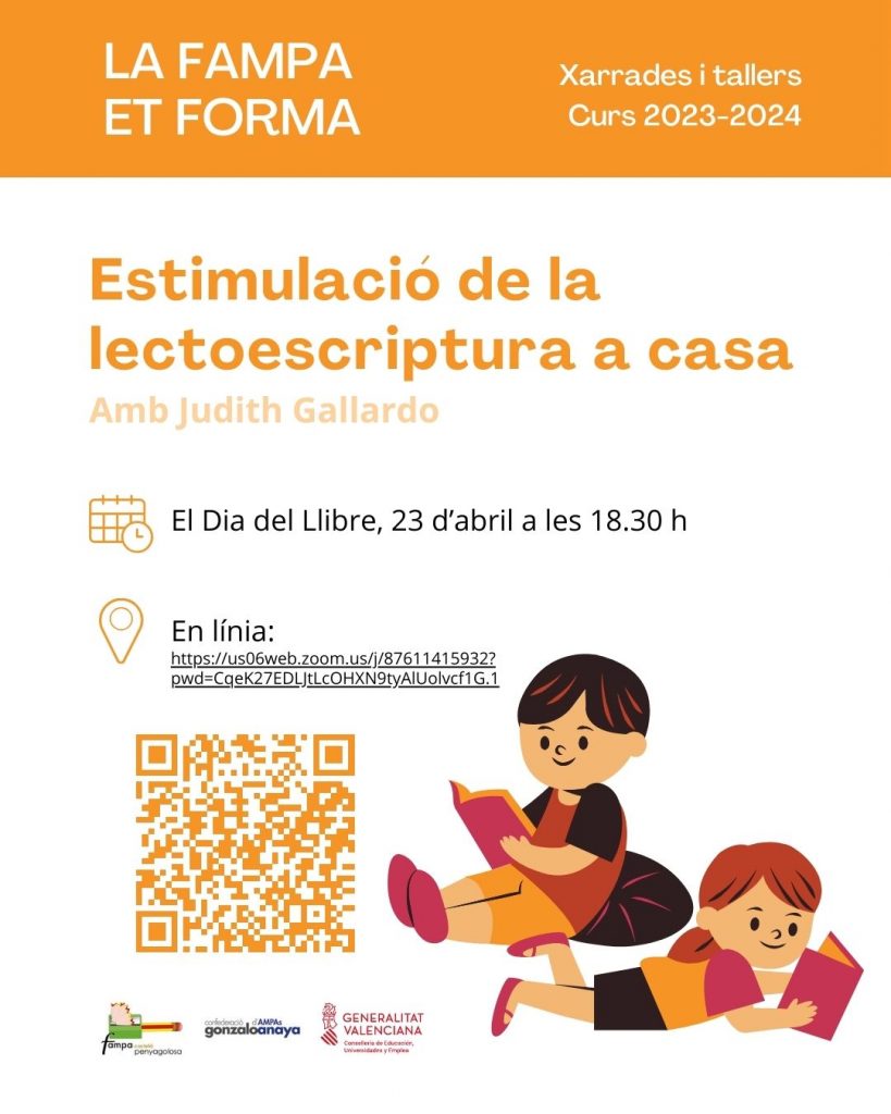 El Dia del Llibre, 23 d’abril a les 18.30 h, la FAMPA Castelló Penyagolosa us ofereix la formació en línia “Estimulació de la lectoescriptura a casa”.